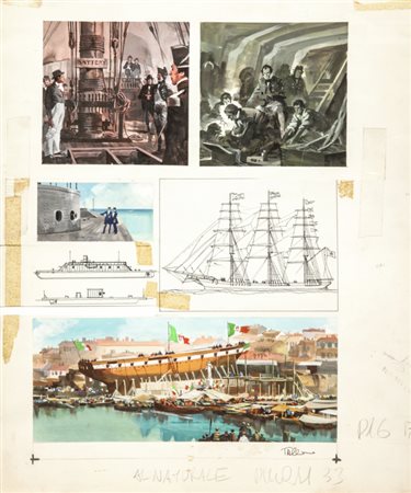 Ferdinando Tacconi "Il progresso navale", 1964 china e tempera su cartoncino...