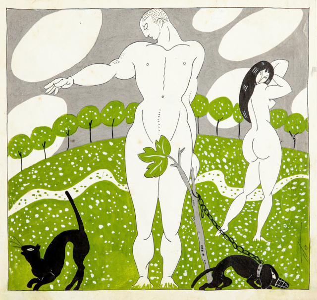 Sergio Tofano "Adamo ed Eva", fineanni '20 tecnica mista su cartoncino, 28 x...