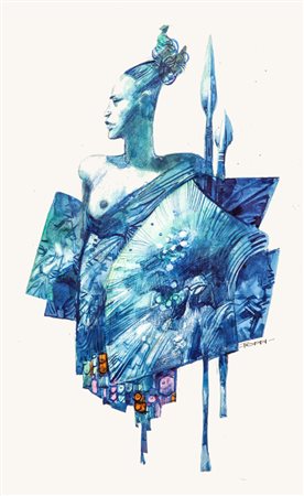 Sergio Toppi "L'Amazzone", 2007 tecnica mista su cartoncino, 33 x 48 cm...