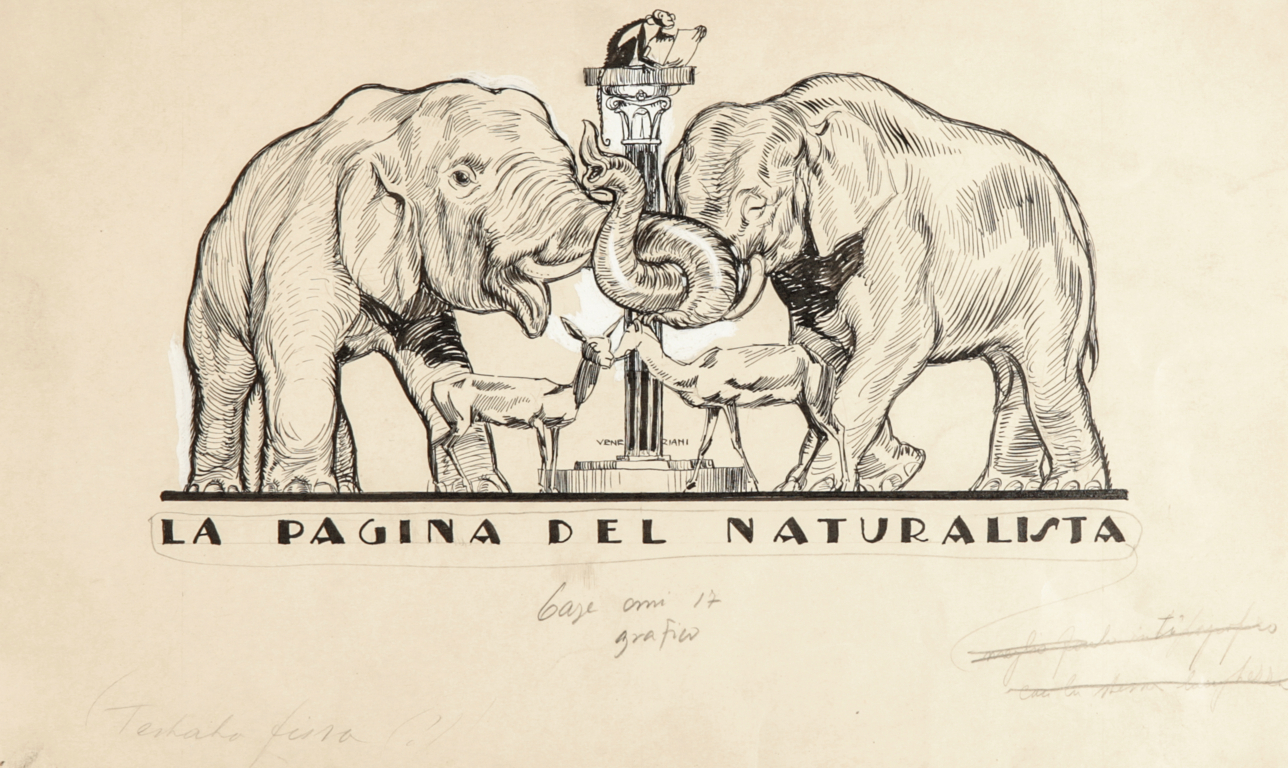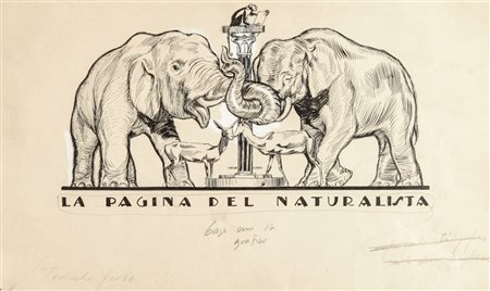 Ubaldo Veneziani "La pagina del naturalista", anni '20 matita e china su...