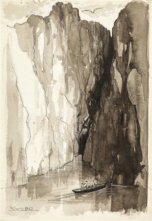 (Enrico Novelli) Yambo "", anni '30 china e acquerello su cartoncino, 20 x 28,5 cm Firmata.