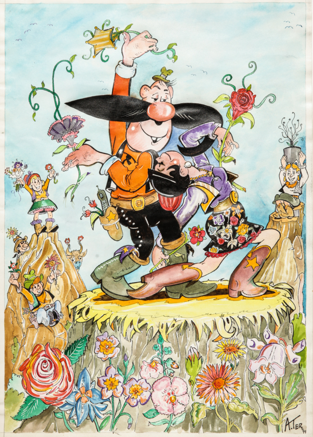 Antonio Terenghi "Calendario Pedrito - Maggio", 1999 china e acquerello su cartoncino, 29,5 x 42 cm Illustrazione originale realizzata da Terenghi per il mese di Maggio di un calendario dedicato al suo personaggio più famoso, Pedrito. Firmato e datato.