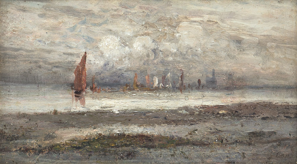 olio su tavola cm. 18,7x33,6; firma in basso a destra, titolo e firma al retro.
