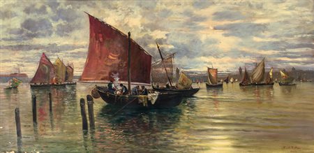 PRATELLA FAUSTO Napoli 10/10/1888 - Napoli 1946Pescatori in lagunaolio su...