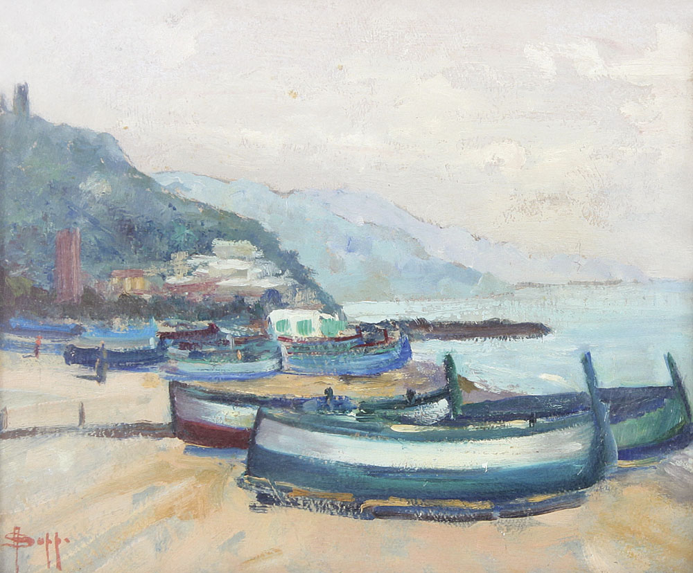 SUPPO ALFREDO Biella 1886 - Torino 1973Barche sulla spiaggiaolio su cartone...