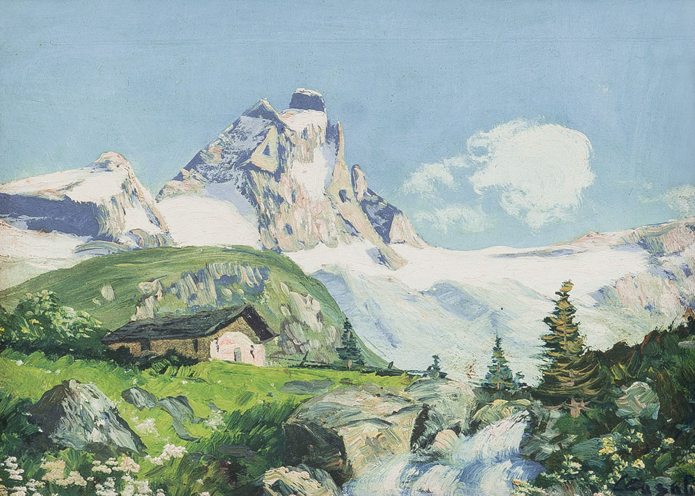 CASATI CARLO Verona 1889 - 1965 Il Cervino olio su cartone cm. 17x23, firma...