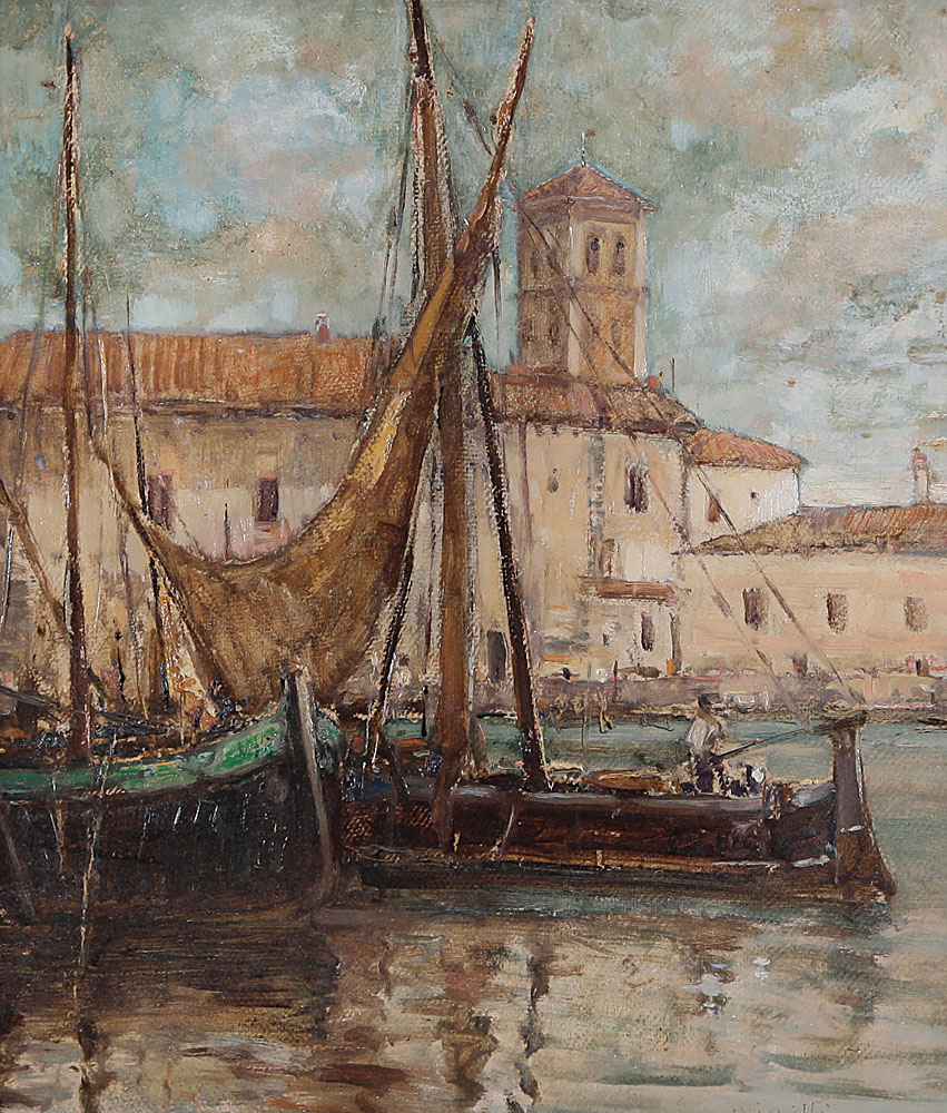 COMINETTI ERNESTO Torino 1900 - 1990Chioggia, 1947olio su cartone cm. 47x40,...