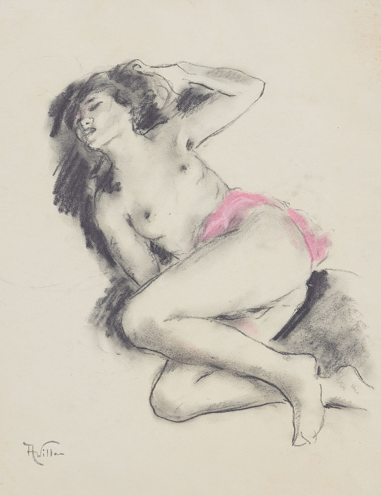 VILLA ALEARDO Ravello 12/02/1865 - Milano 31/12/1906Figura distesapastelli su...
