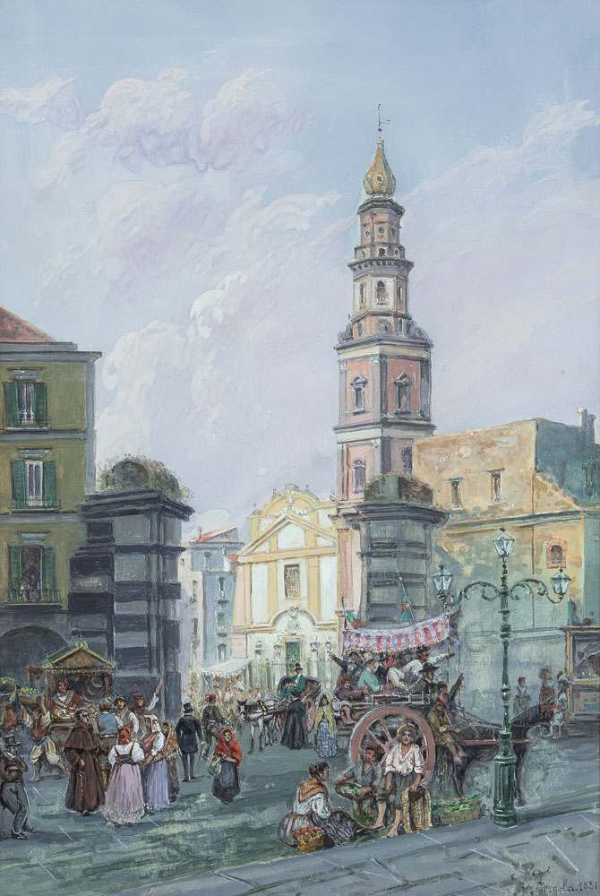 FERGOLA FRANCESCO Napoli 1791 - Messina 1845Piazza del mercato, 1831tempera...