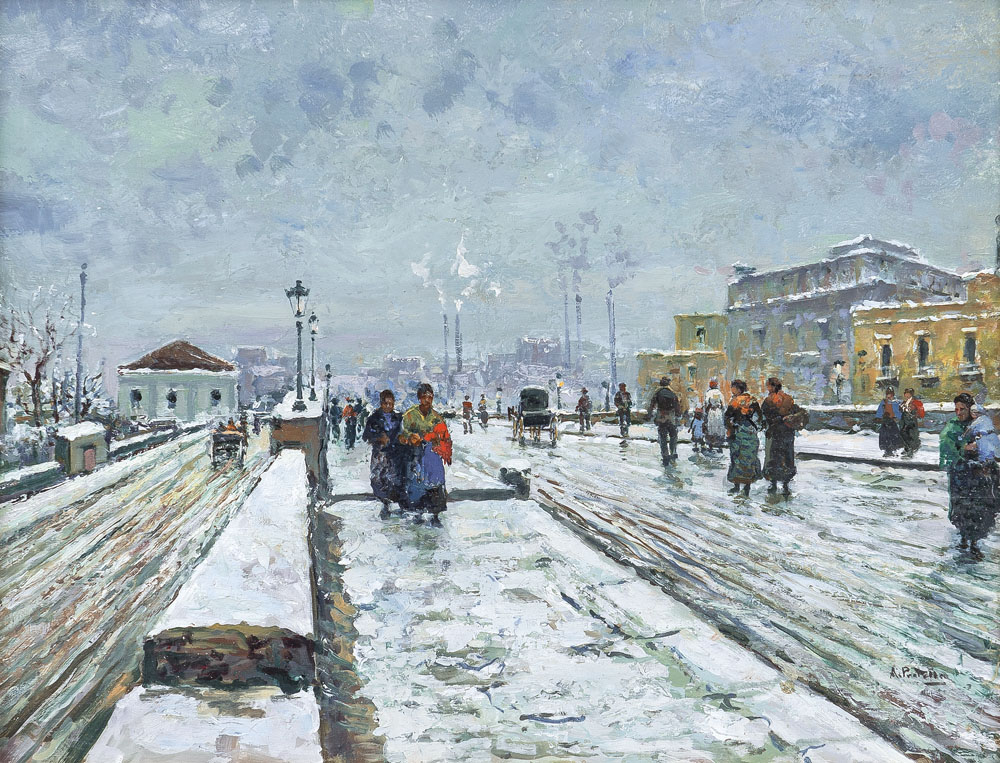 PRATELLA ATTILIO Lugo (Ra) 19/04/1856 - Napoli 28/04/1949Nevicata sul Ponte...