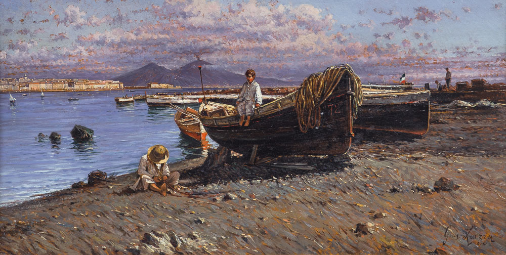 LAEZZA GIUSEPPE Napoli 1835 - Napoli 03/10/1905Marina di Napoliolio su tavola...