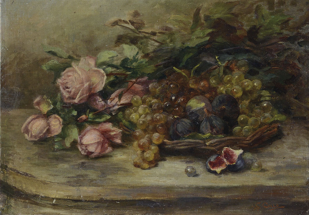 COCCO GIOVANNI 1898 - ?Rose e fruttaolio su tela cm. 38x55x2, firma in basso...