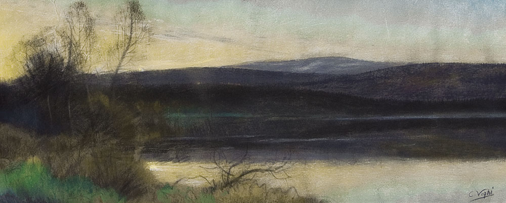 Lot 361 | VIGHI CORIOLANO Firenze 1852 - Bologna 10/04/1905Paesaggio lacustrepastelli...