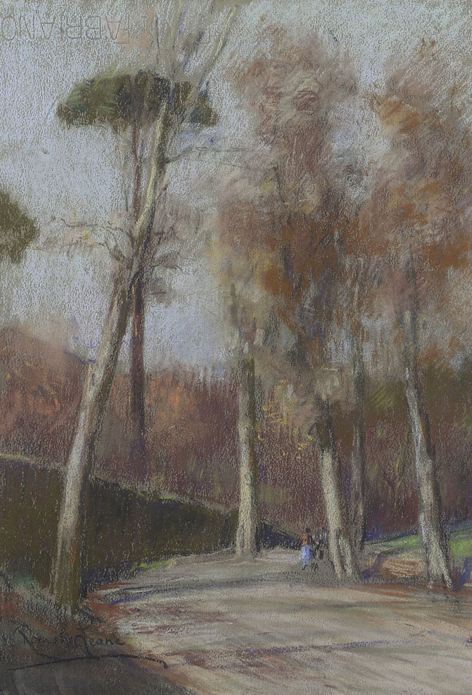 LEONE ROMOLO Napoli 1883 - 1958Paesaggio nel parcopastelli su carta cm....