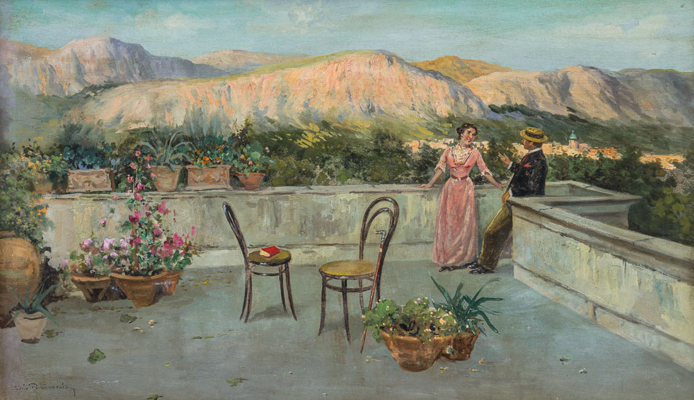 BRANCACCIO CARLO Napoli 06/03/1861 - 1920Terrazza a Sorrentoolio su tela cm....