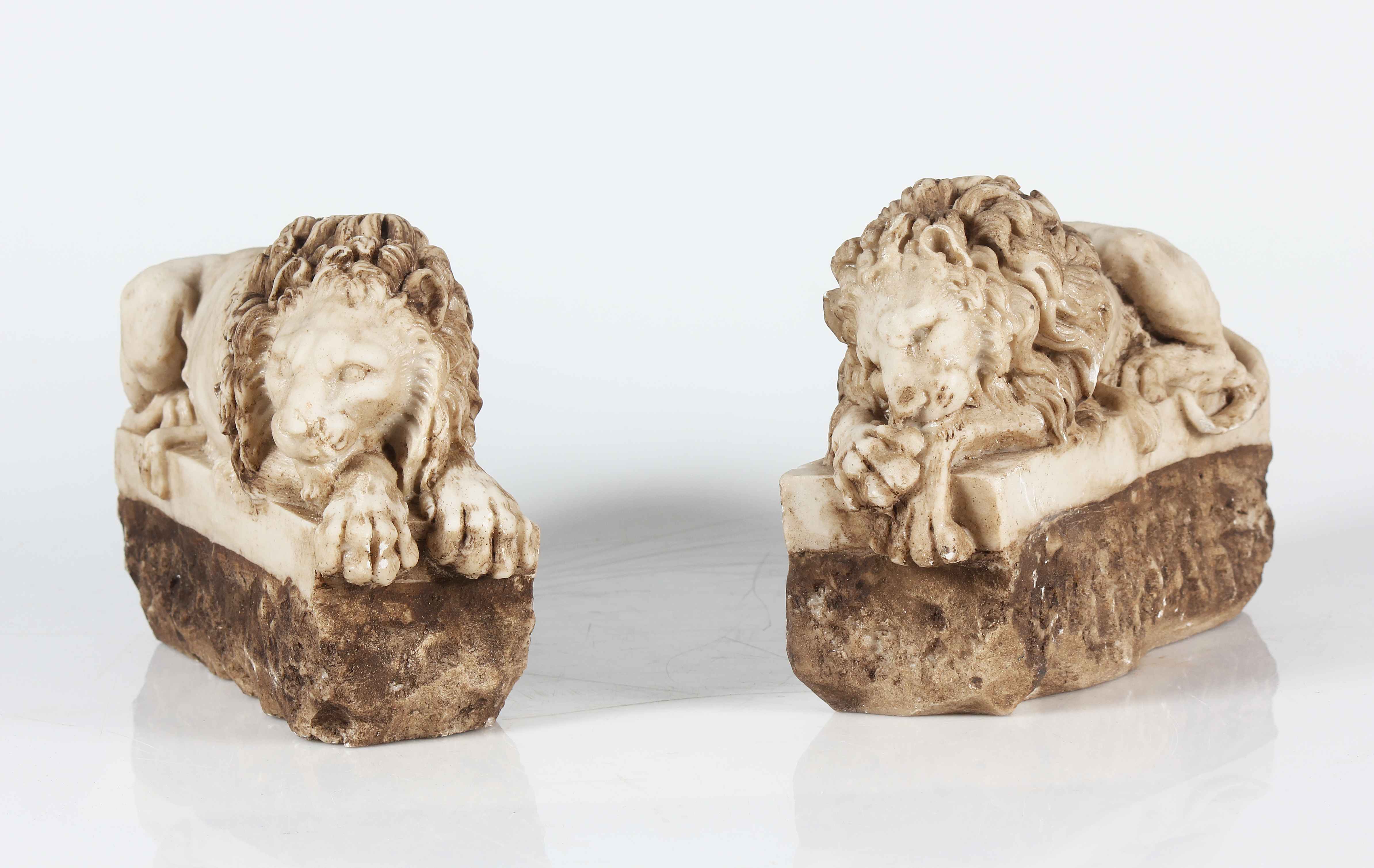 MANIFATTURA ITALIANA DEL XIX SECOLO Coppia di leoni in marmo. Marmo. Cm 30,00...