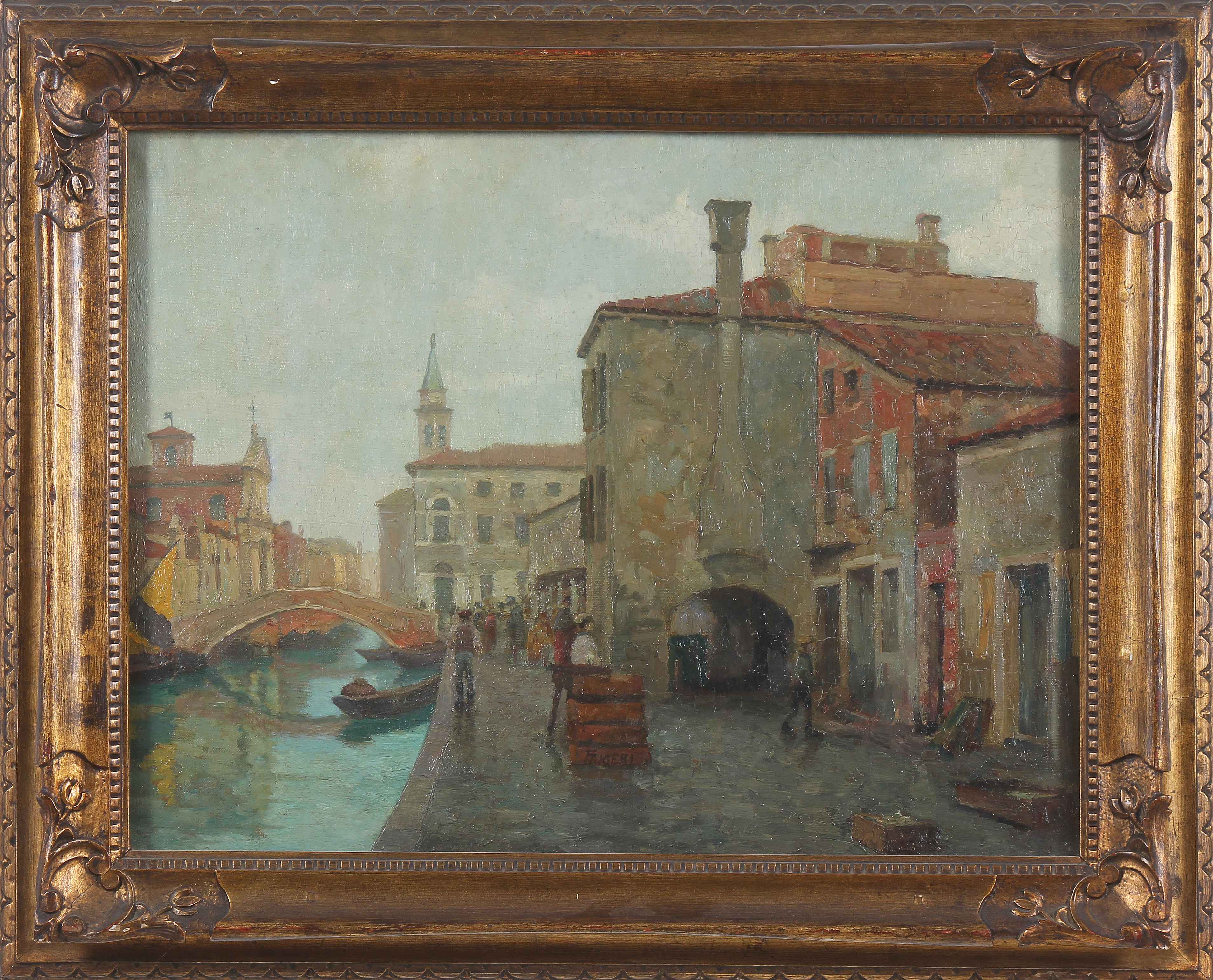 FRIGERIO LUIGI (1873 - 1936) Chioggia. Olio su tela . Cm 68,00 x 52,00. Opera esposta alla XV edizione della Biennale di Venezia, 1925. FRIGERIO LUIGI (1873 - 1936) Chioggia. Oil on canvas Artwork exhibited at the XV edition of the Venice Biennale, 1925. 68,00 x 52,00 cm. Cornice presente