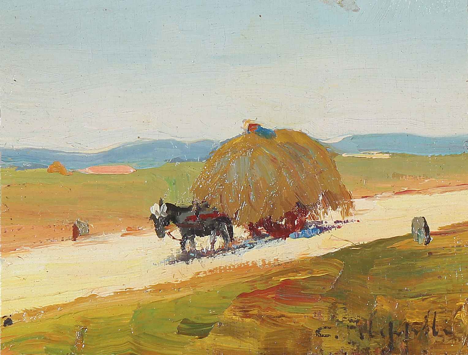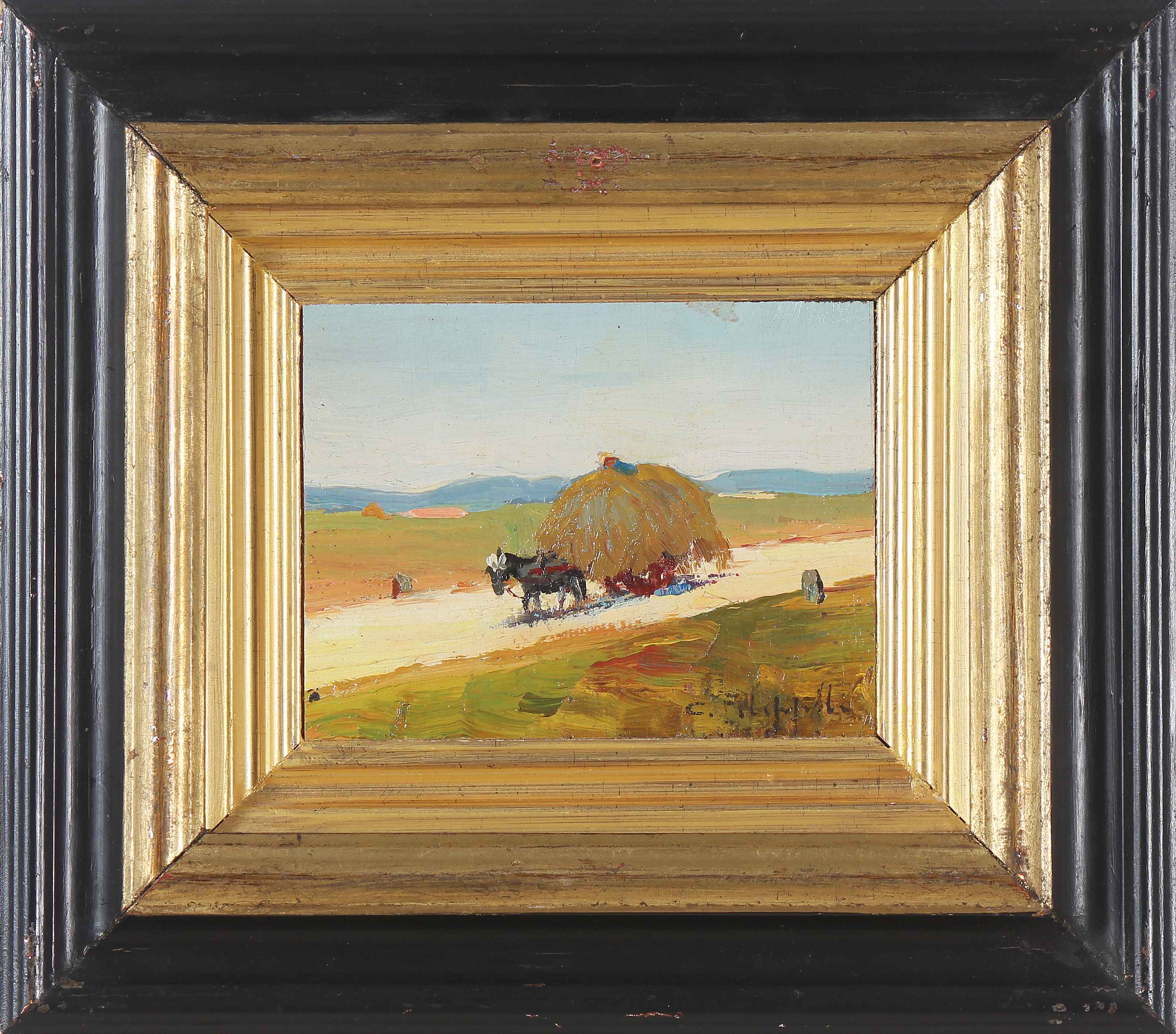 FILIPPELLI CAFIERO (1889 - 1973) Campagna toscana. Olio su tavola. Cm 13,00 x 10,00. Firma in basso a destra. FILIPPELLI CAFIERO (1889 - 1973) Tuscan Countryside. Oil on panel Signature on the bottom right. 13,00 x 10,00 cm. . Cornice presente