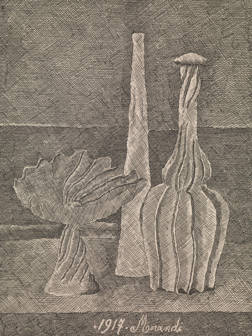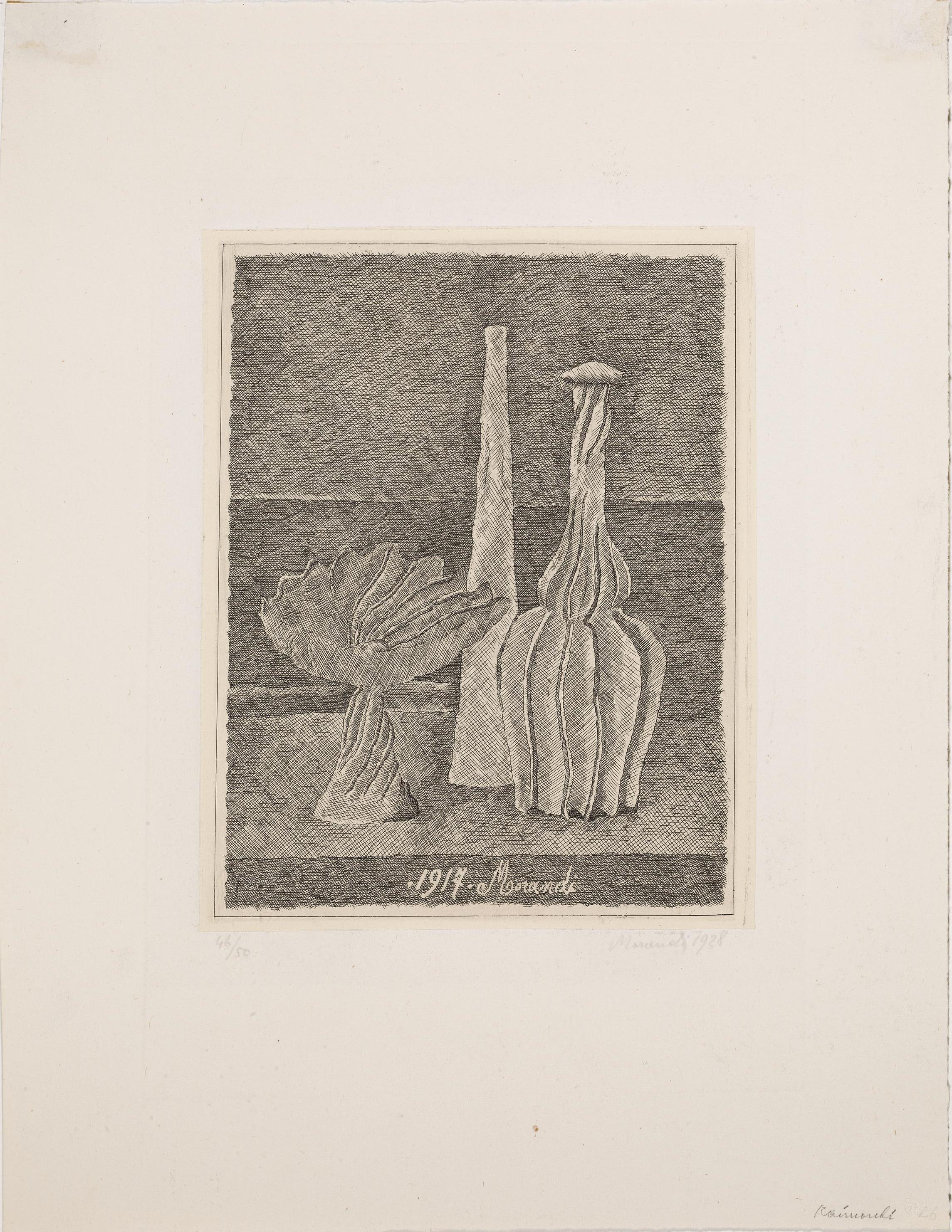 Secondo quanto precisato da Morandi a Petrucci in una lettera del 24 dicembre 1948, la data incisa è errata; doveva essere infatti “1916”, anno di realizzazione del dipinto (poi in Collezione Mattioli) dal quale proviene il soggetto.