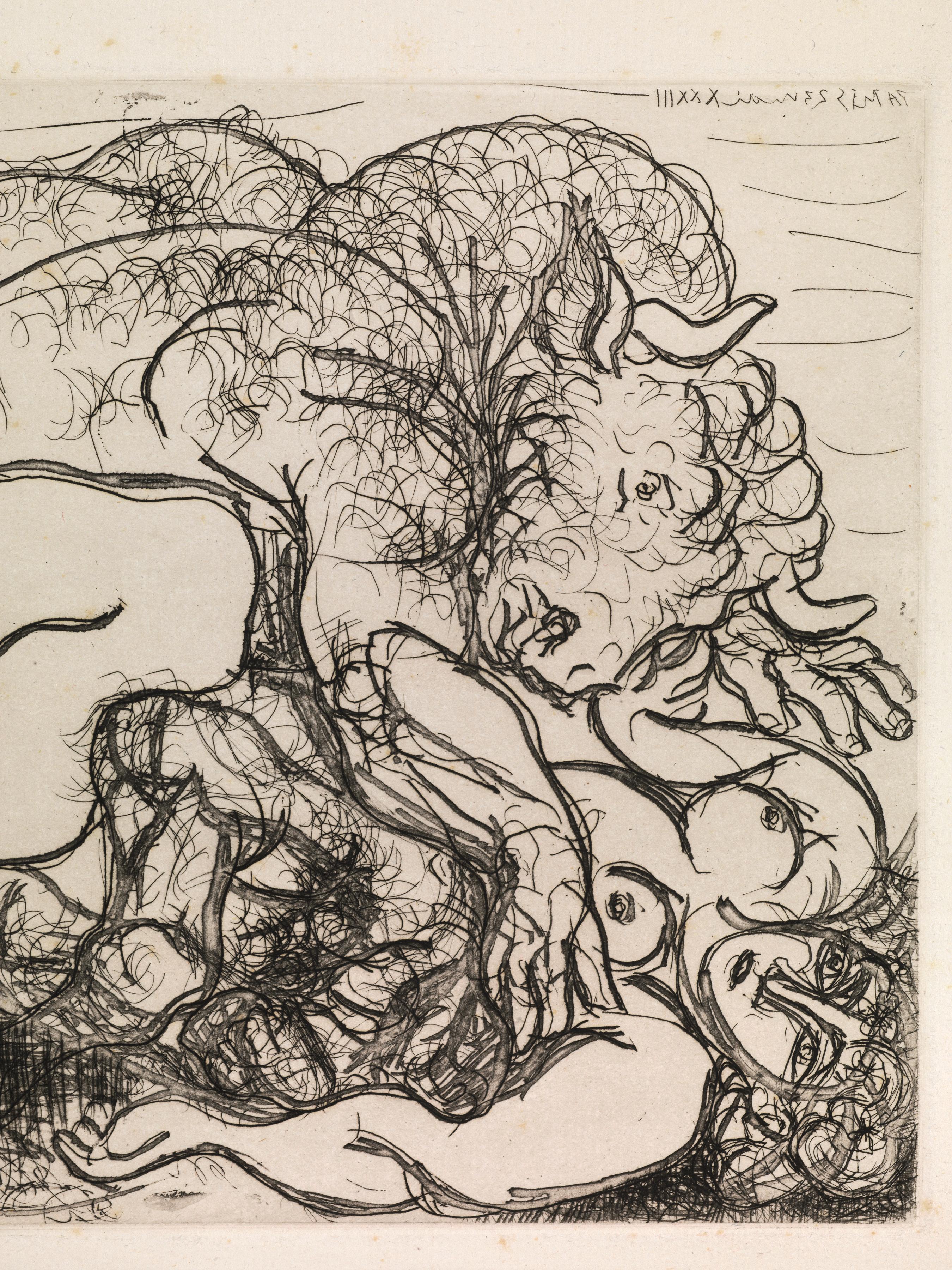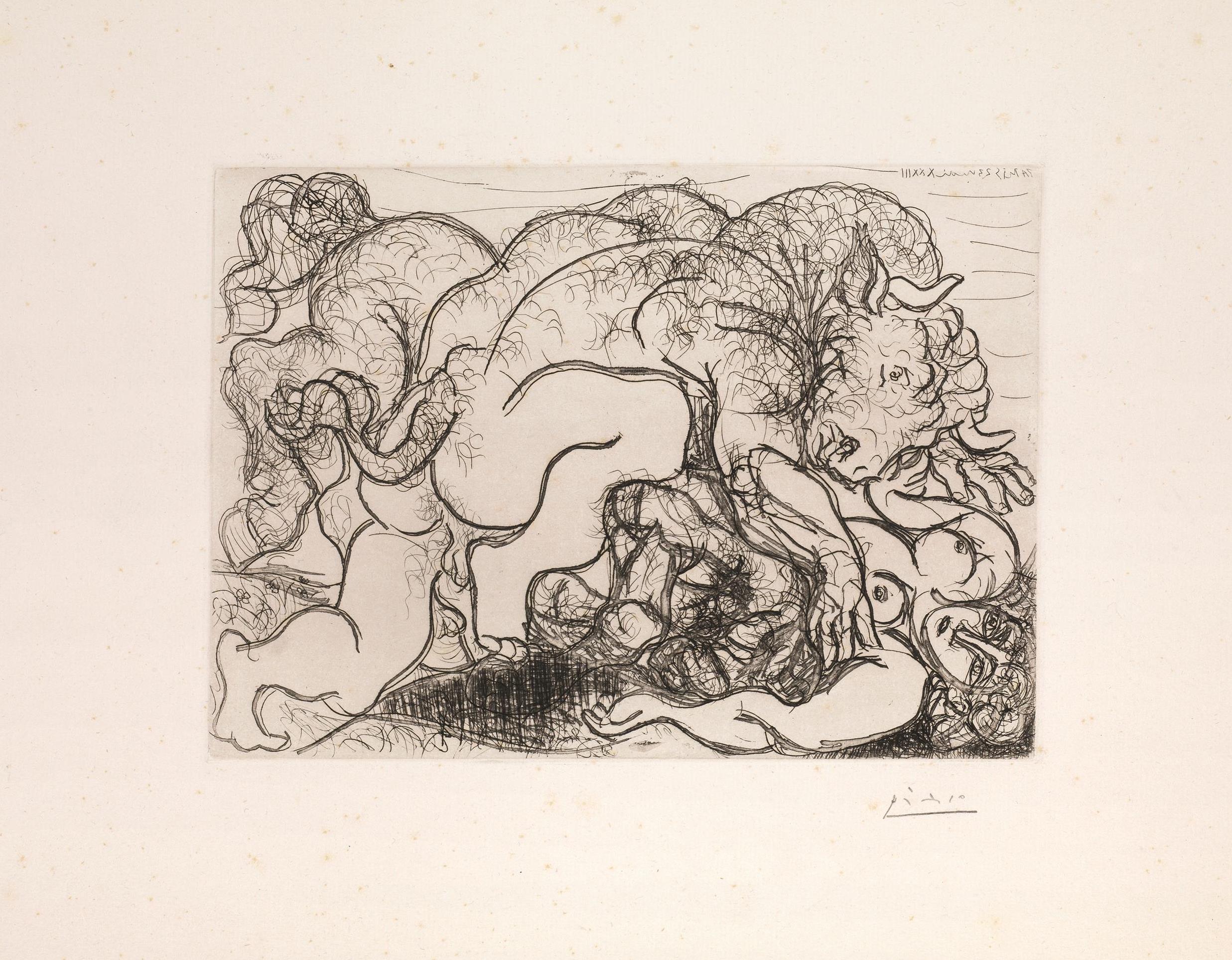 Pablo Picasso (Malaga 1881 Mougins 1973) MINOTAURE ATTAQUANT UNE AMAZONE....