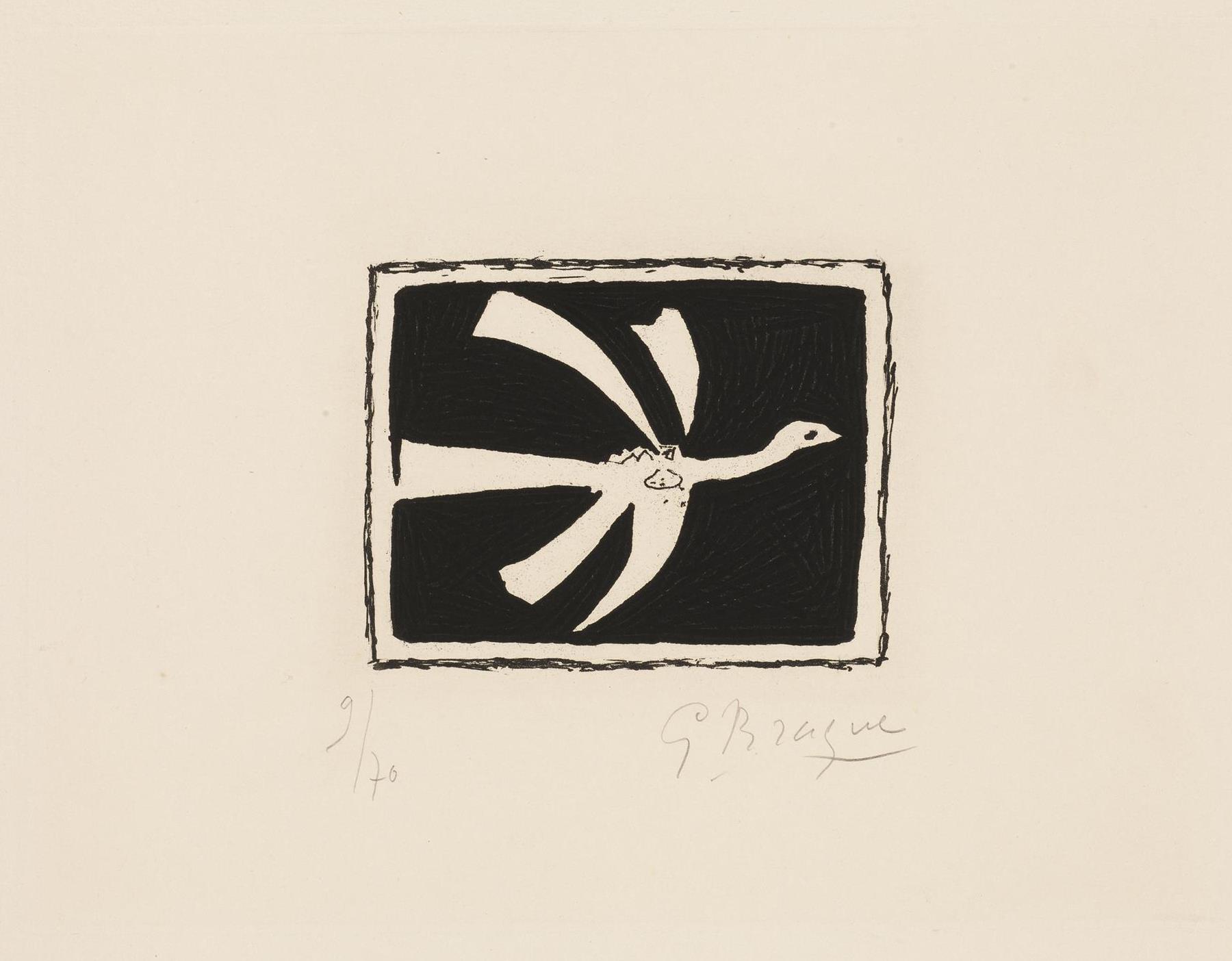 Georges Braque (Argenteuil 1882 Parigi 1963) OISEAU BLANC SUR FOND NOIR. 1958...