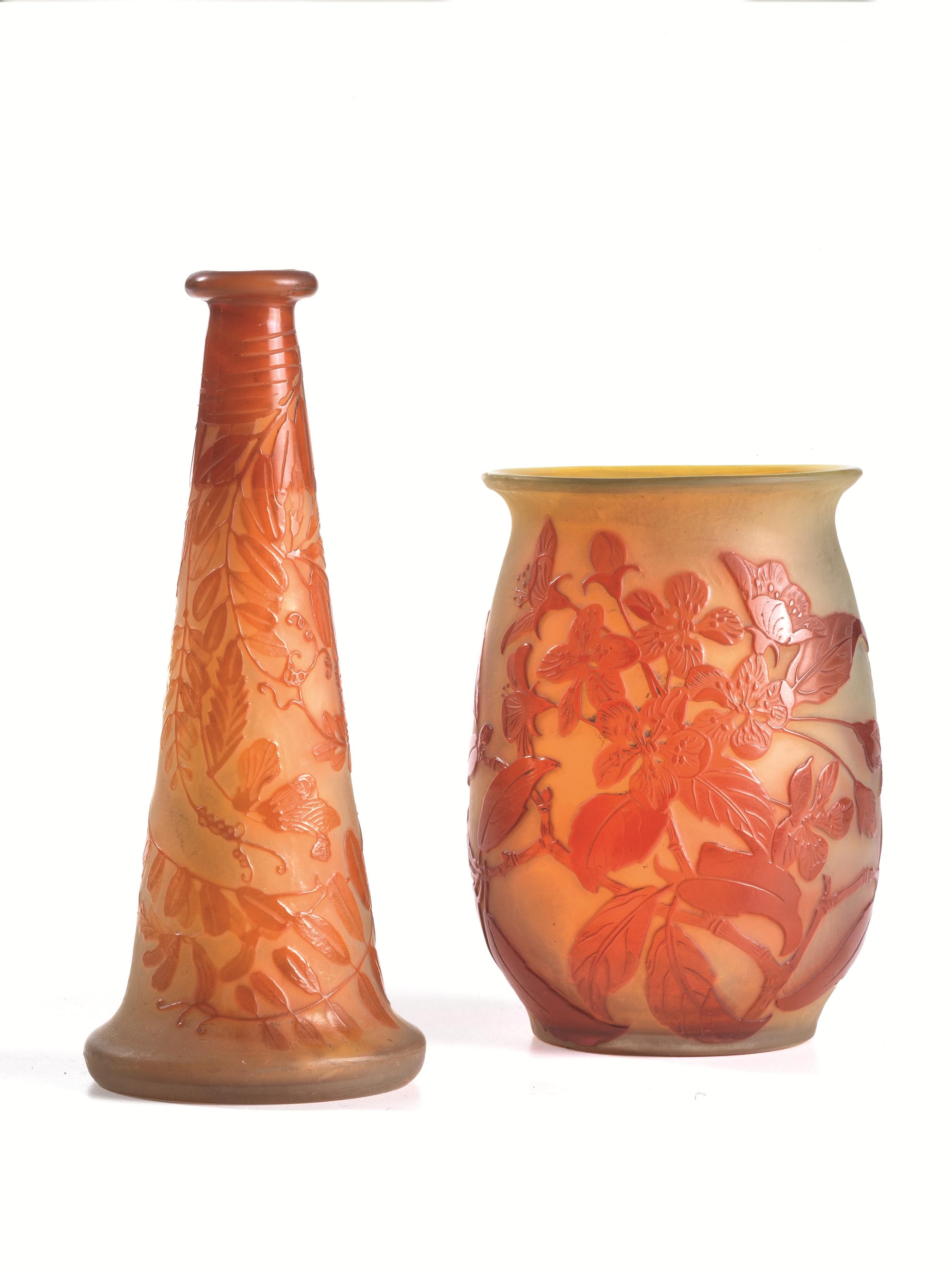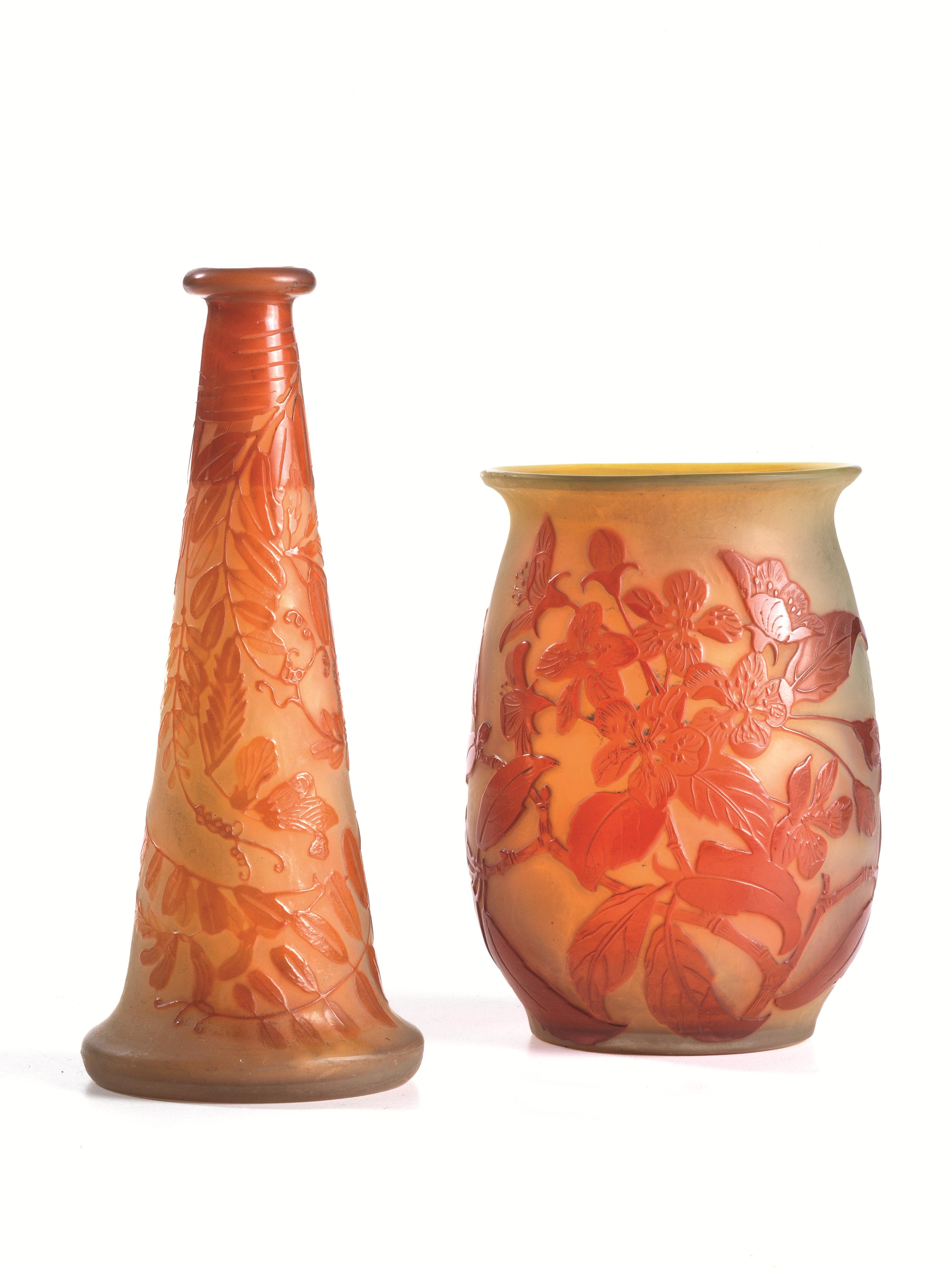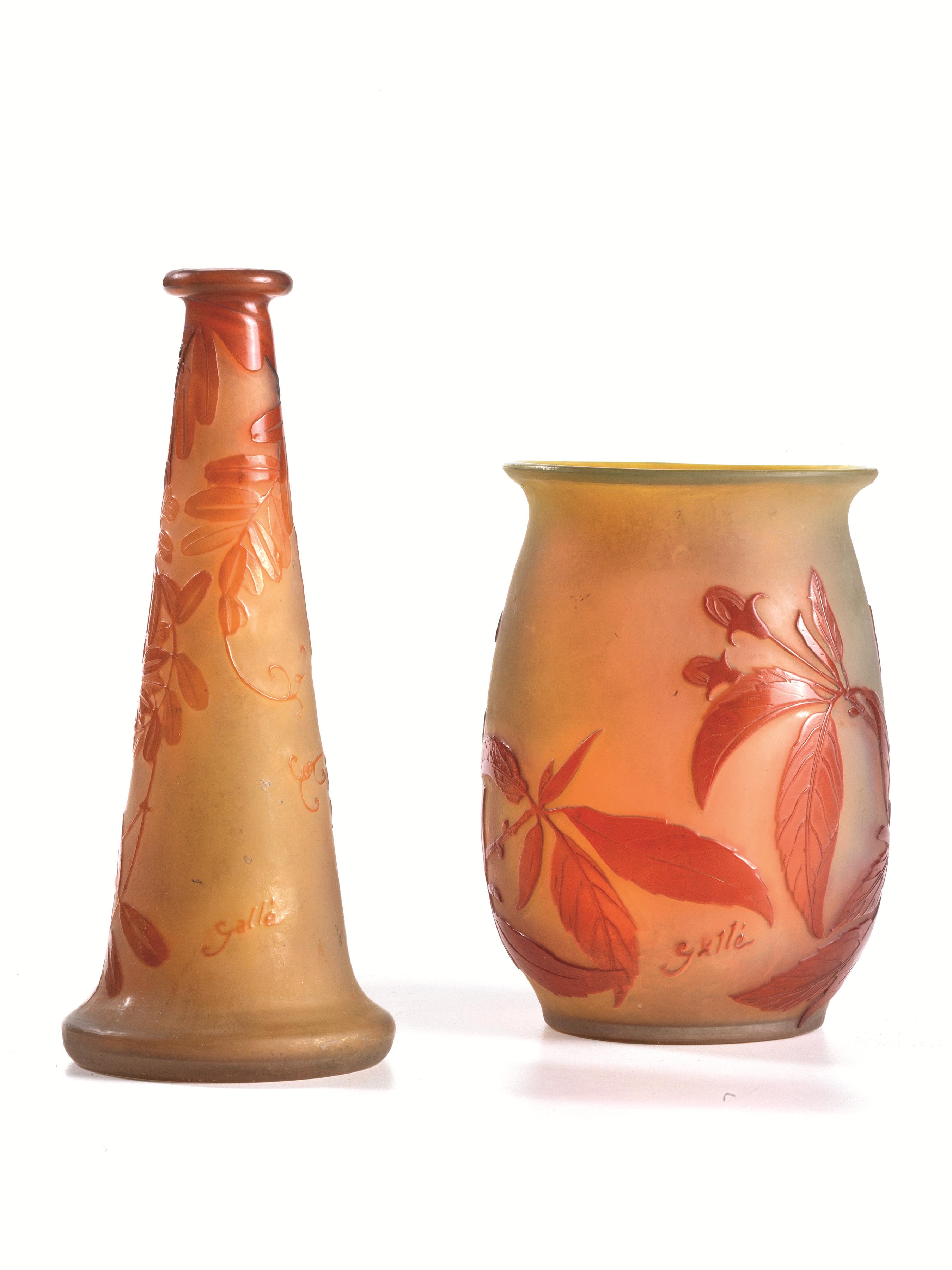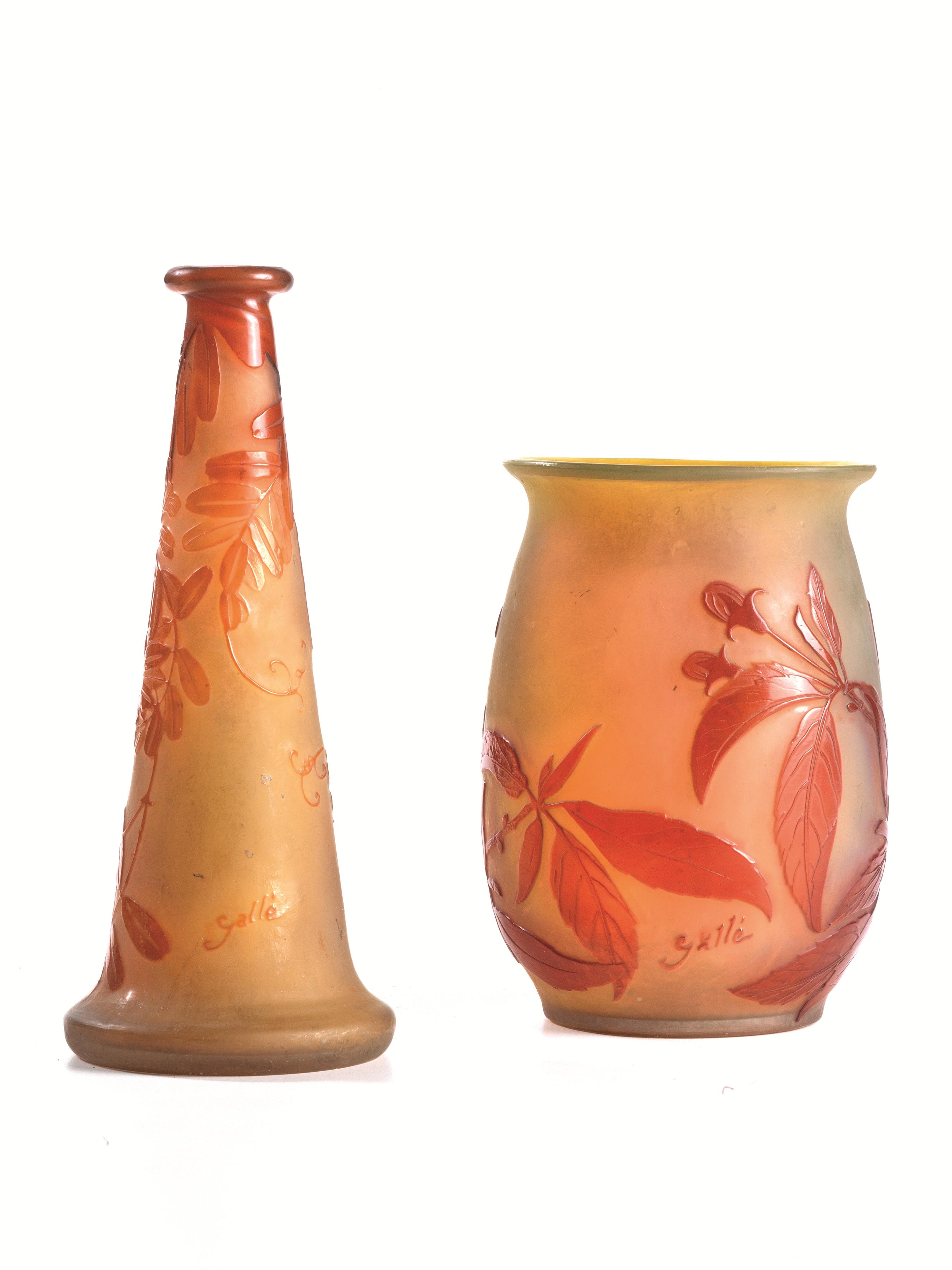 DUE VASI Manifattura Gallè vetro lavorato all'acido con decori a...