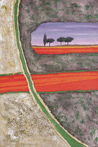 MARIO PASCHETTA Milano 27/04/1949 Papaveri in Toscana, 1996 malte e terre naturali su tela cm. 120x80, firma, titolo e anno al retro, dichiarazione d'autenticità e archivio numero 94 dell'artista su foto, pubblicato sul catalogo della mostra "Mario Paschetta La mia Toscana" a cura di Lucio Barbera, Edizioni Cinquantasei, tenutasi dal 31 luglio al 20 settembre 1999 presso la Torre Normanna, Castello di Altomonte, Festival Mediterraneo dei Due Mari e dal 28 agosto al 16 settembre 1999 presso la Galleria d'Arte Cinquantasei (Desenzano del Garda), pagina 17