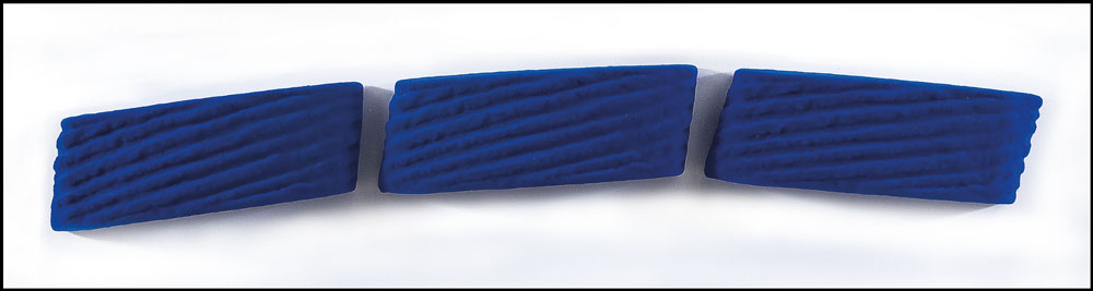 pittura su 3 elementi cm 8x25 cadauno, totale cm. 8x79, firma, titolo e anno sul primo elemento, dichiarazione d'autenticità dell'artista e Archivio Pino Pinelli su foto, entro teca in plexiglass.