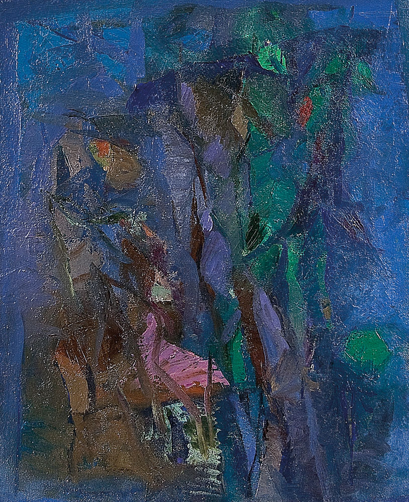 olio su tela cm. 61x50, firma e anno al retro, dichiarazione d'autenticità dell'artista su foto.