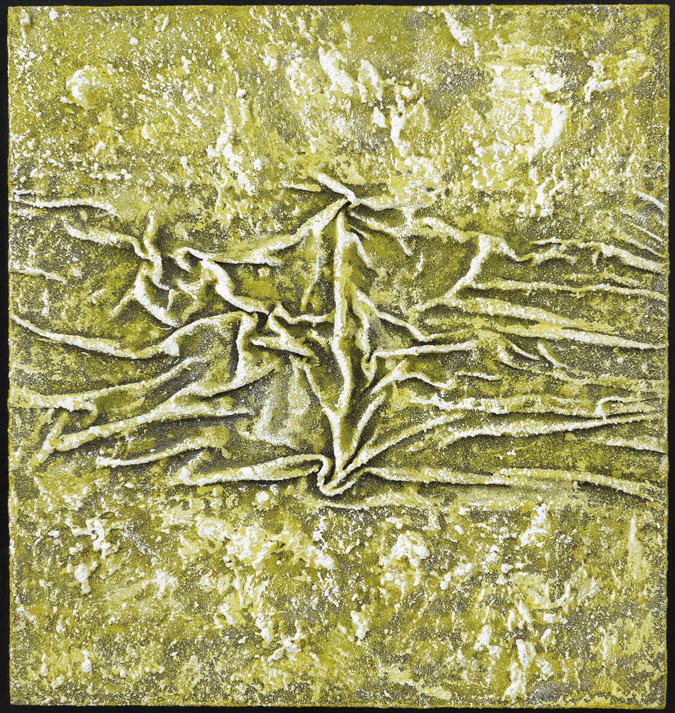 tecnica mista su tela montata su tavola cm. 47x45, firma, titolo ed etichetta della Galleria Rino Costa al retro, dichiarazione d'autenticità dell'artista su foto.