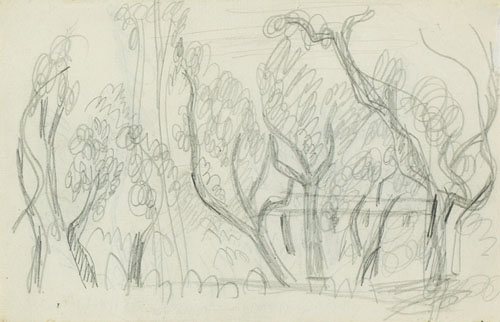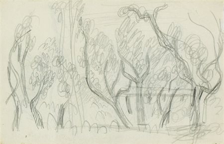 OSVALDO LICINI Monte Vidon Corrado (Ap) 22/03/1894 - Monte Vidon Corrado (Ap) 11/09/1958 Paesaggio, 1925/26 matita su carta cm. 13,2x20,6; presenta un altro dipinto a matita intitolato "Marina" al retro, opera non firmata, dichiarazione di provenienza della Collezione Caterina Hellstrom Riccitelli su due foto, pubblicato sul catalogo della mostra "Osvaldo Licini, totemico errante, disegni 1924-1956" a cura di Roberto Bertorelli, tenutasi presso la Galleria Il Sipario (PR) dal 19 maggio al 30 giugno 2007.