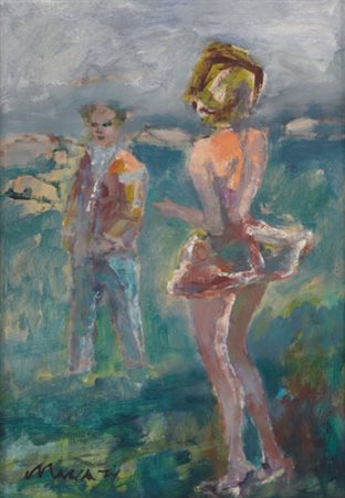 MINO MACCARI Siena 24/11/1898 - Roma 17/06/1989 L'incontro olio su cartone...