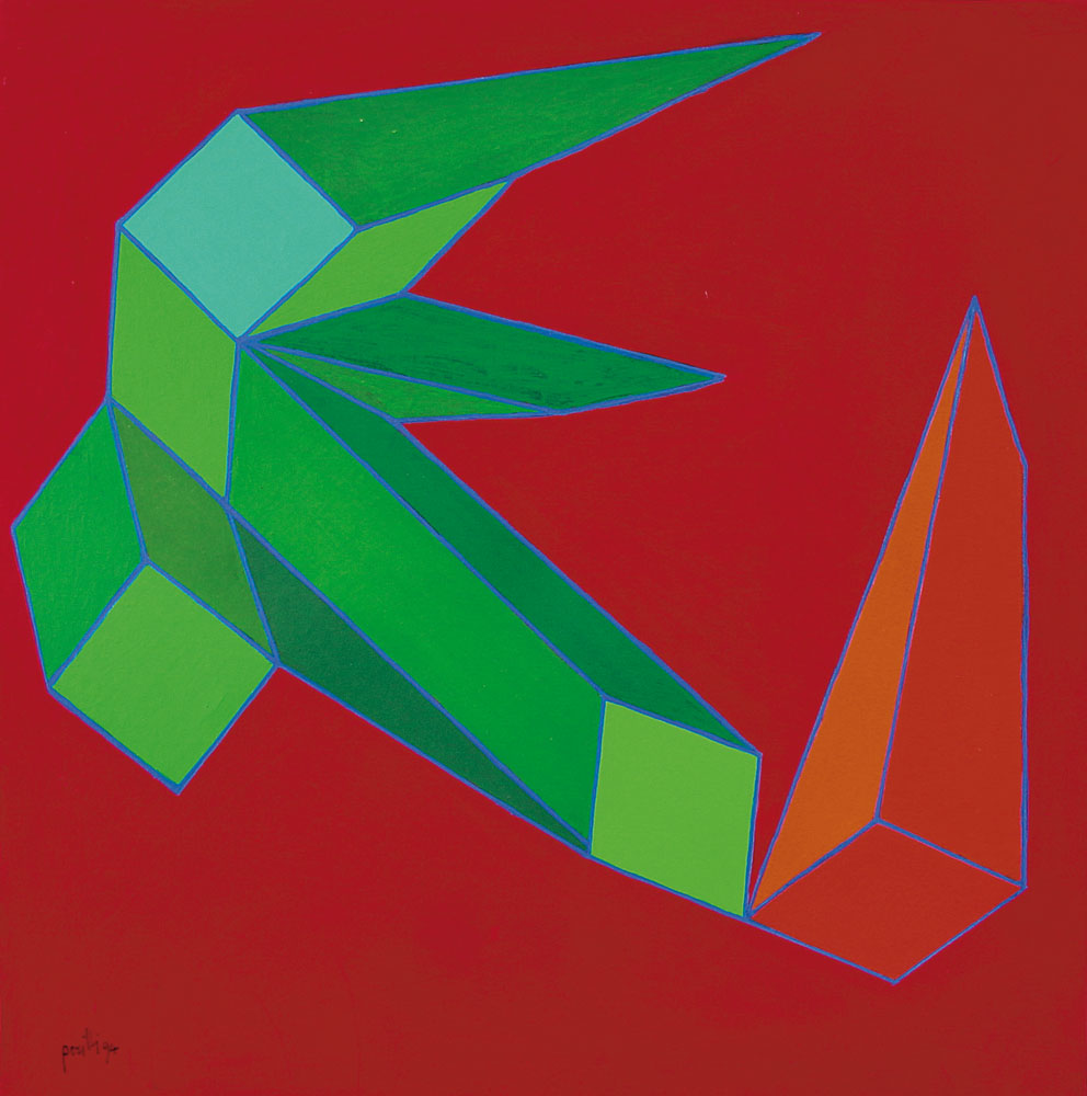 tecnica mista su tela cm. 50x50, firma e anno in basso a sinistra, titolo, firma e anno al retro, dichiarazione d'autenticità, archivio dell'artista ed etichetta della Galleria Fumagalli (BG) su foto.