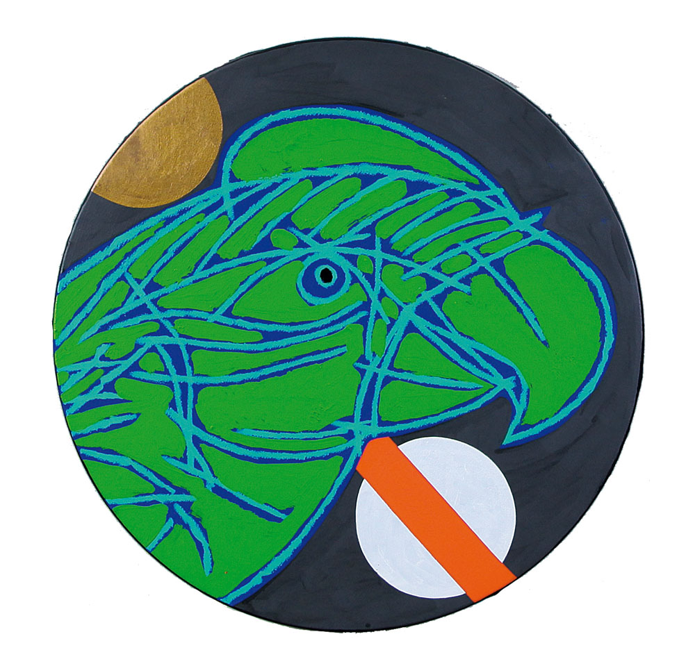 acrilico e smalto su tela circolare diametro cm. 50, firma, titolo e anno al retro, dichiarazione d'autenticità dell'artista su foto.