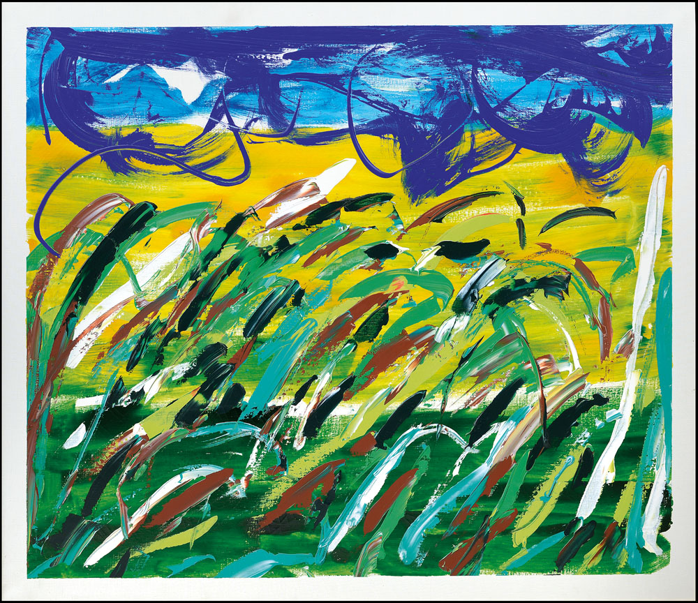 smalti su tela cm. 100x120, firma al retro, opera registrata presso la Fondazione Mario Schifano al numero S.M.80/118 in data 17/04/2000 come da dichiarazione su foto e certificato allegato.