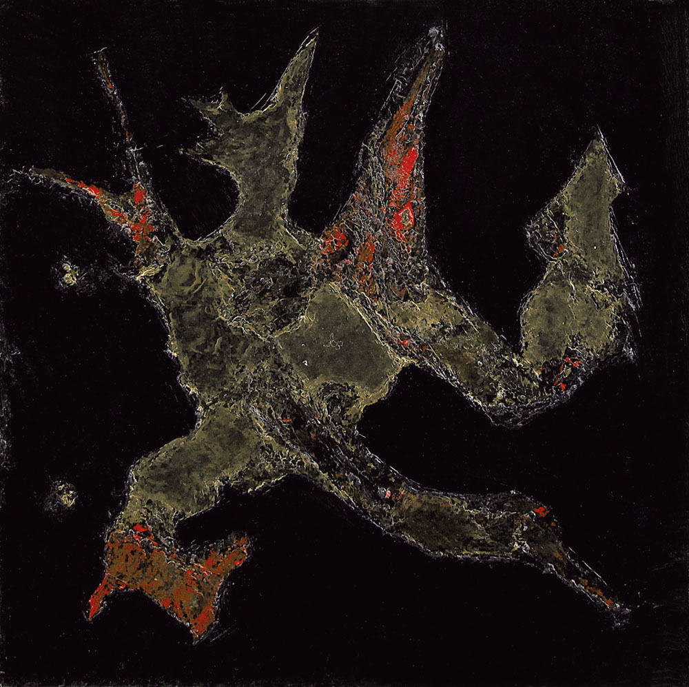acrilici e tecnica mista su MDF (pannello in medium density) cm. 40x40x1, firma e anno al retro, dichiarazione d'autenticità dell'artista su foto, opera priva di cornice.