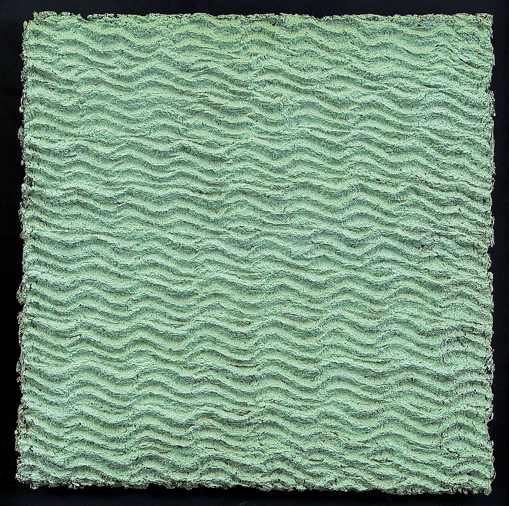 tecnica mista su cartapesta cm. 48,5x48,5; firma, anno ed etichetta dell'artista con archivio al retro, dichiarazione d'autenticità dell'artista su 2 foto.