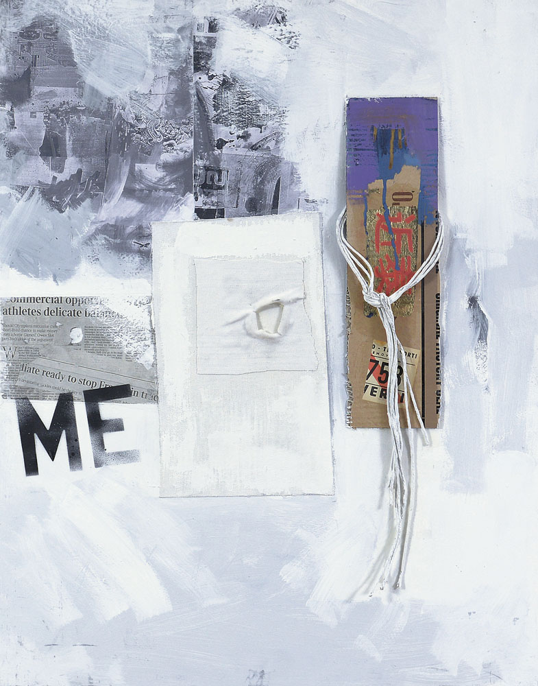 tecnica mista, applicazioni e collage su tavola cm. 90x70, firma, titolo e anno al retro, dichiarazione d'autenticità dell'artista su foto.