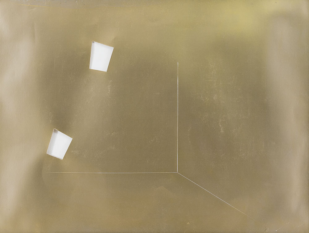 cartoncino operato applicato su tela cm. 50x70, opera non firmata, dichiarazione d'autenticità di Annamaria Rizzo vedova Vermi su foto.