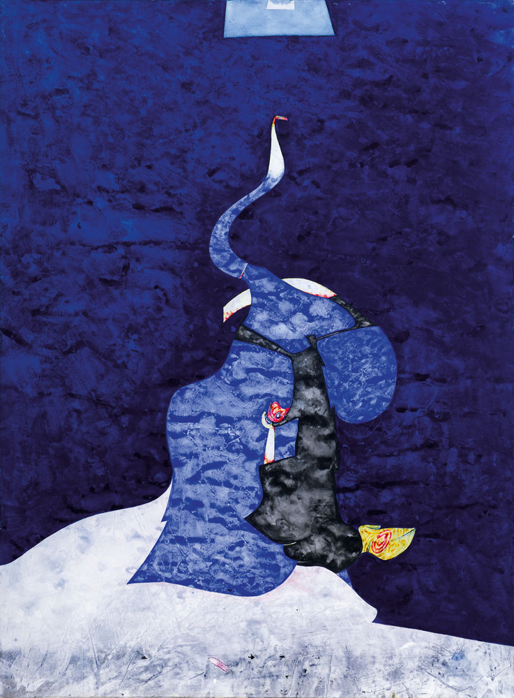 tecnica mista su cartoncino applicato su tela cm. 100x75, firma in basso a sinistra, dichiarazione d'autenticità dell'artista con anno 1986 su foto.