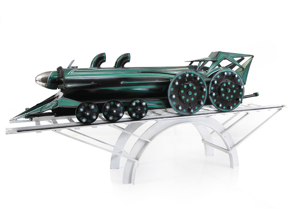 scultura in ferro verniciata e aerografata composta da due elementi cm. 106x48x25; pezzo unico, firma su etichetta in alluminio posta alla punta del treno, dichiarazione d'autenticità dell'artista su foto.