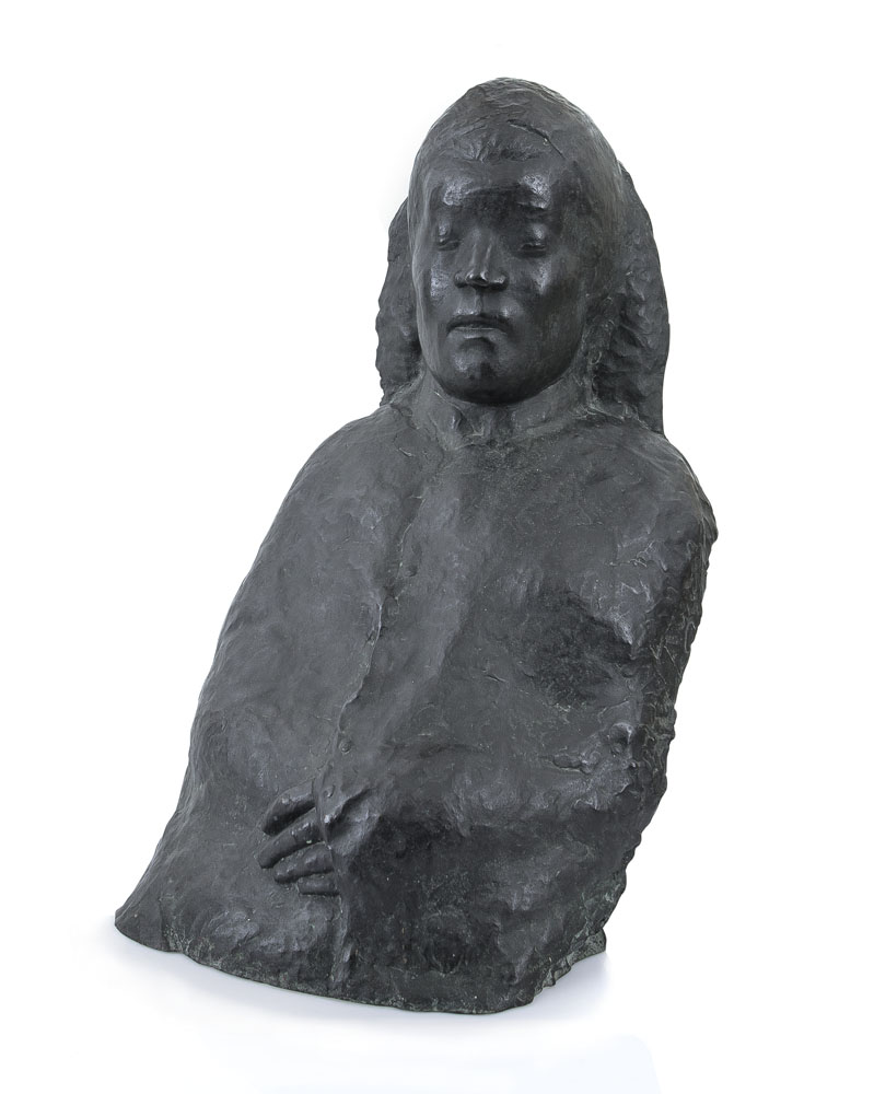 scultura in bronzo altezza cm. 55, pezzo unico, firma in basso a sinistra, dichiarazione d'autenticità dell'artista e timbro della Galleria Annunciata (MI) su foto.