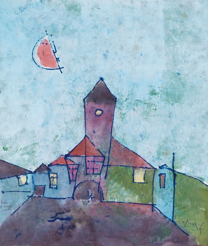 FRANCO ROGNONI Milano 20/09/1913 - Milano 11/03/1999 Sera di Maggio, 1973 tecnica mista su carta intelata cm. 55x46, firma in basso a destra, dichiarazione d'autenticità dell'artista su foto.