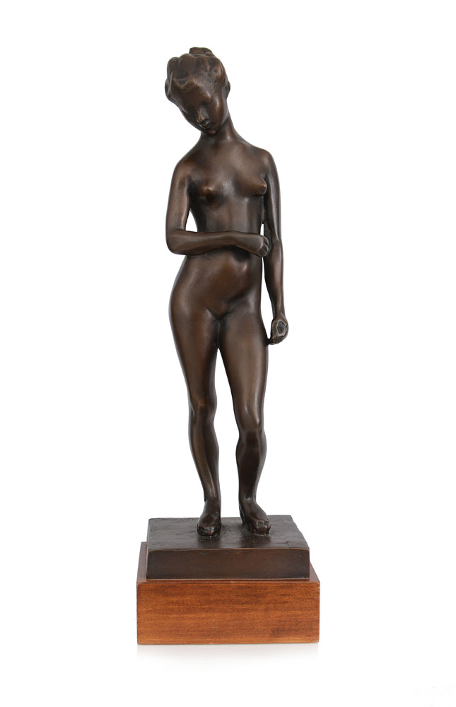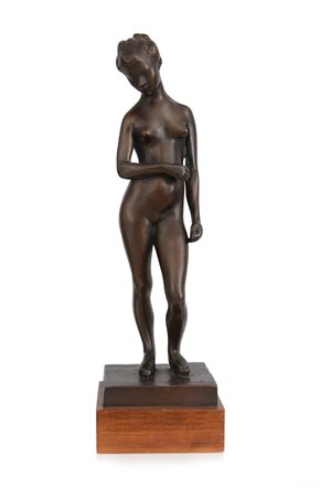 scultura in bronzo a patina marrone altezza cm. 40,5 (con base in legno cm. 46); esemplare 100/125, firma, tiratura e punzone della Fonderia Venturi (Cadriano-BO) alla base, dichiarazione d'autenticità dell'artista su foto.