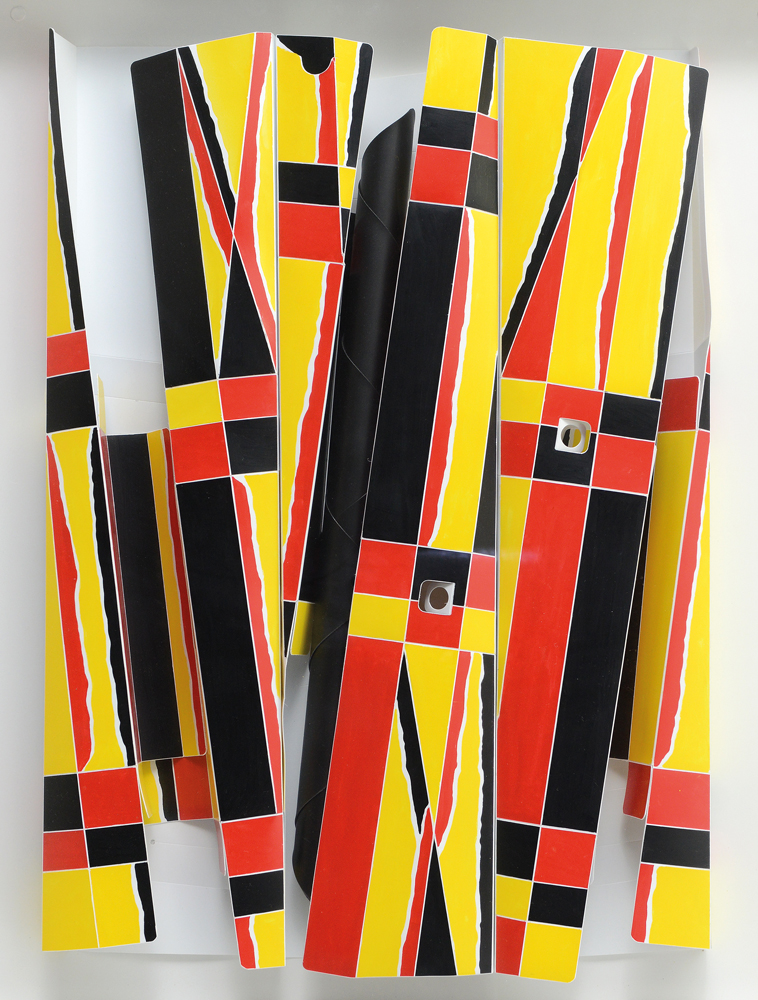 polipropilene bianco dipinto con smalti serigrafici e bottoni automatici cm. 70x50x5, firma al retro, dichiarazione d'autenticità allegata.
