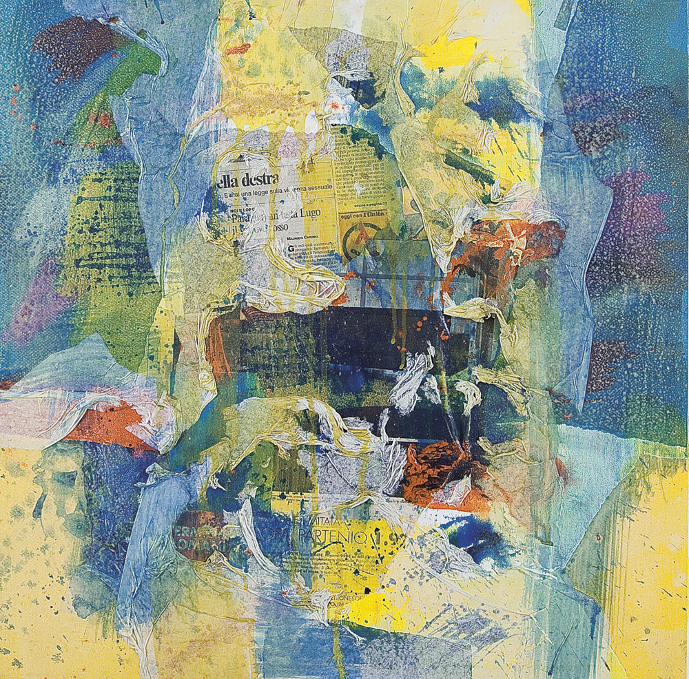 tecnica mista e collage su tela cm. 60x60, firma, titolo, anno e timbro della ArteTivù al retro, dichiarazione d'autenticità dell'artista e timbro della ArteTivù su foto.