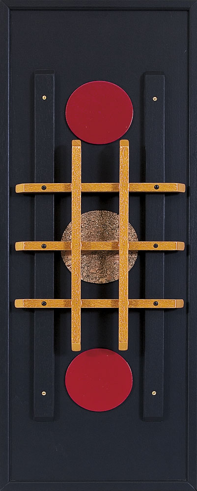 Concetti n. 44, 2010 scultura da parete in legno e sughero cm. 81x31x7, firma, titolo, anno ed etichetta dell'artista al retro, dichiarazione d'autenticità dell'artista su foto.