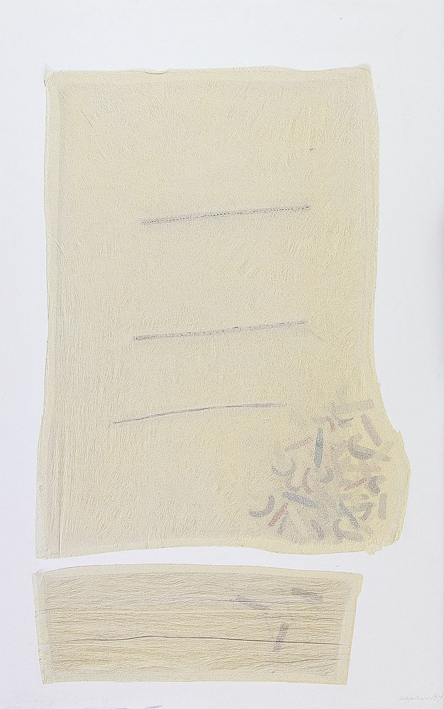 papier froisses su cartone cm. 98,8x61,5; firma e anno in basso a destra, timbro con tecnica, anno e firma dell'artista al retro.