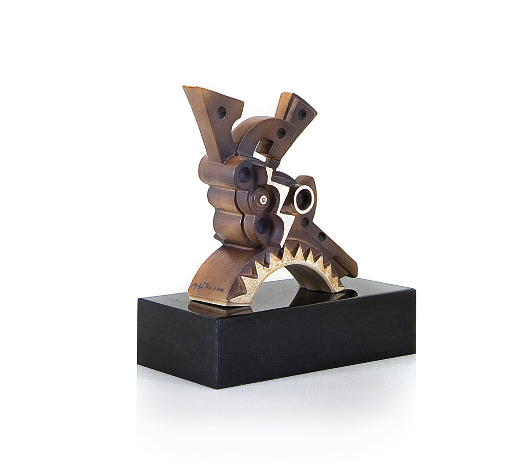 scultura in ceramica cm. 19,5x18x9, (con base in plexiglass cm. 26x23,5x11,5), esemplare 98/100. firma in basso su un lato, dichiarazione d'autenticità dell'artista su foto.