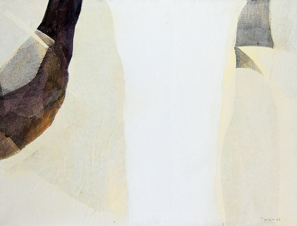tecnica mista e collage su carta intelata cm. 60x80, firma e anno in basso a destra.